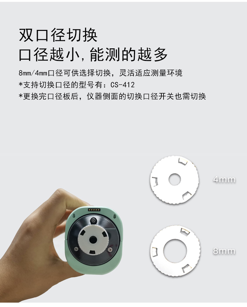 CS-410為8mm口徑;CS-411為4mm口徑;CS-412支持口徑切換。