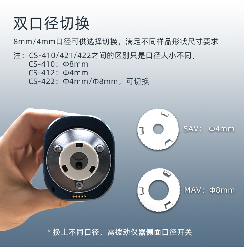 CS-420為8mm口徑;CS-421為4mm口徑;CS-422為口徑,4mm和8mm和切換。