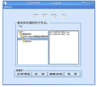 點擊打印窗體文件選擇列表框中選取文件名(文件名以樣品編號命名),點擊本窗體的刪除資料按鈕,將刪除以前所存儲的該樣品的測試資料。