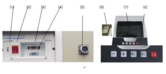 ⑵ 電源開關(guān): 接通電源后,按下此開關(guān)儀器開始工作。