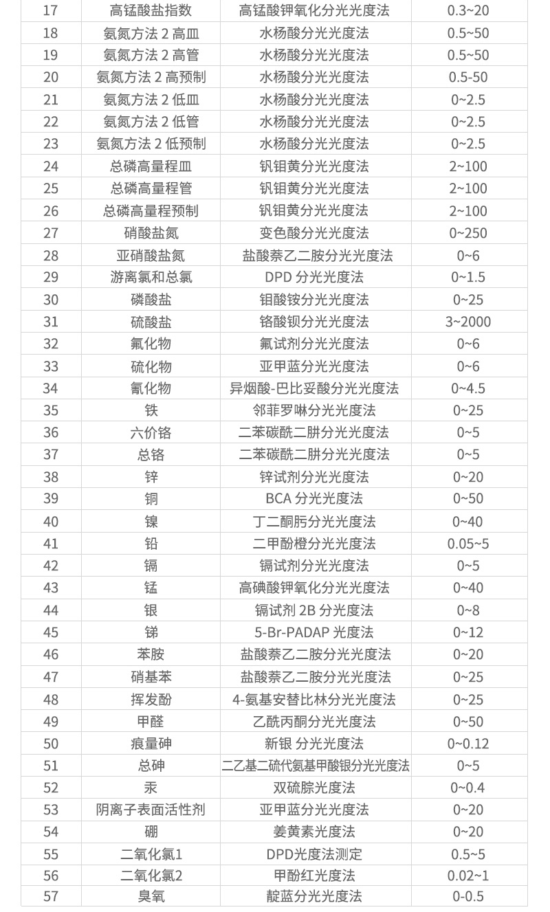 COD、氨氮、總磷、總氮、濁度、重金屬、無機物、有機物