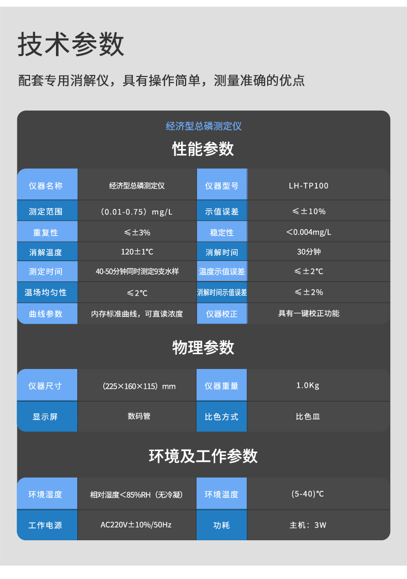 曲線參數:內存標準曲線,可直讀濃度, 具有斷電保護功能